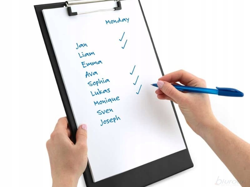 Jest poręczna, a jej niewielki rozmiar ułatwia przenoszenie w torbie czy plecaku, co sprawia, że jest to idealne rozwiązanie dla osób, które potrzebują wygodnego miejsca do zapisków w podróży. Klips umieszczony na górnej krawędzi deski umożliwia pewne przytrzymanie dokumentów, co zapobiega ich zsuwaniu się lub zagubieniu.