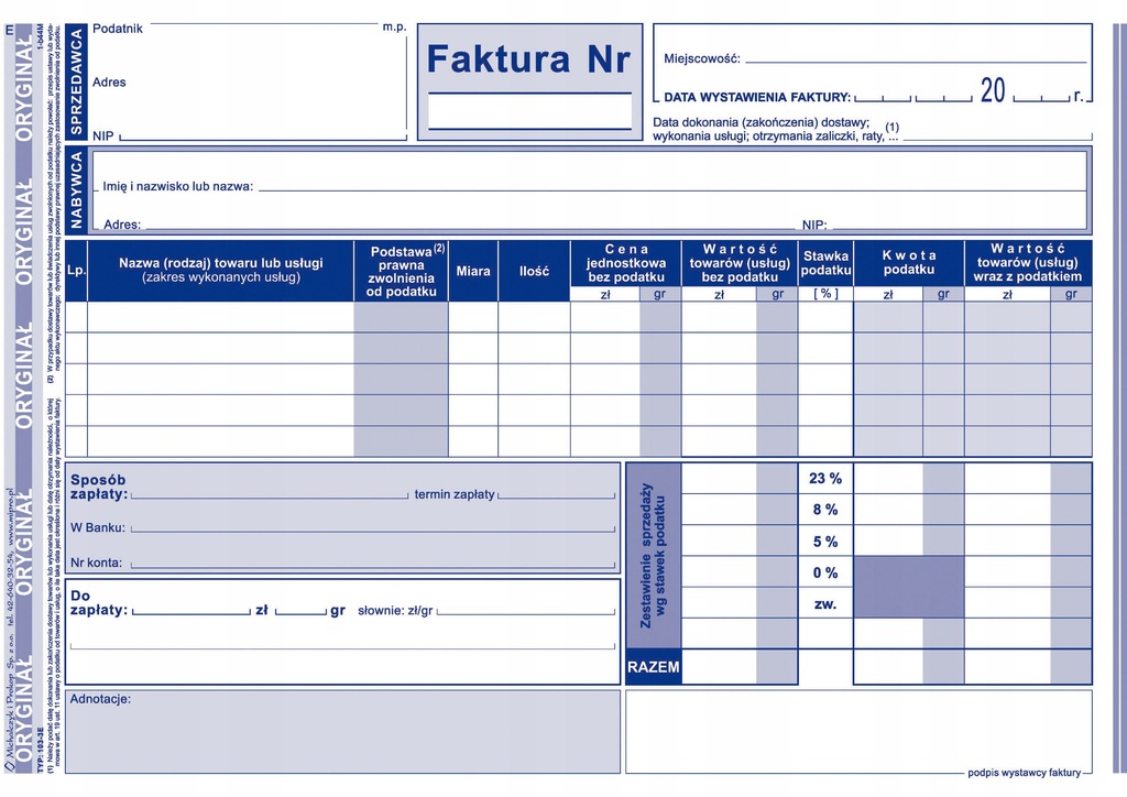 Oferujemy wysokiej jakości drukowane formularze akcydensowe, które są niezastąpionym elementem codziennego funkcjonowania biura czy firmy. Nasze druki zostały zaprojektowane z myślą o wygodzie użytkowania i zapewnieniu profesjonalizmu w prowadzeniu dokumentacji. Sprawdzą się doskonale w każdym biurze, kancelarii prawnej, firmie transportowej czy przedsiębiorstwie zajmującym się handlem