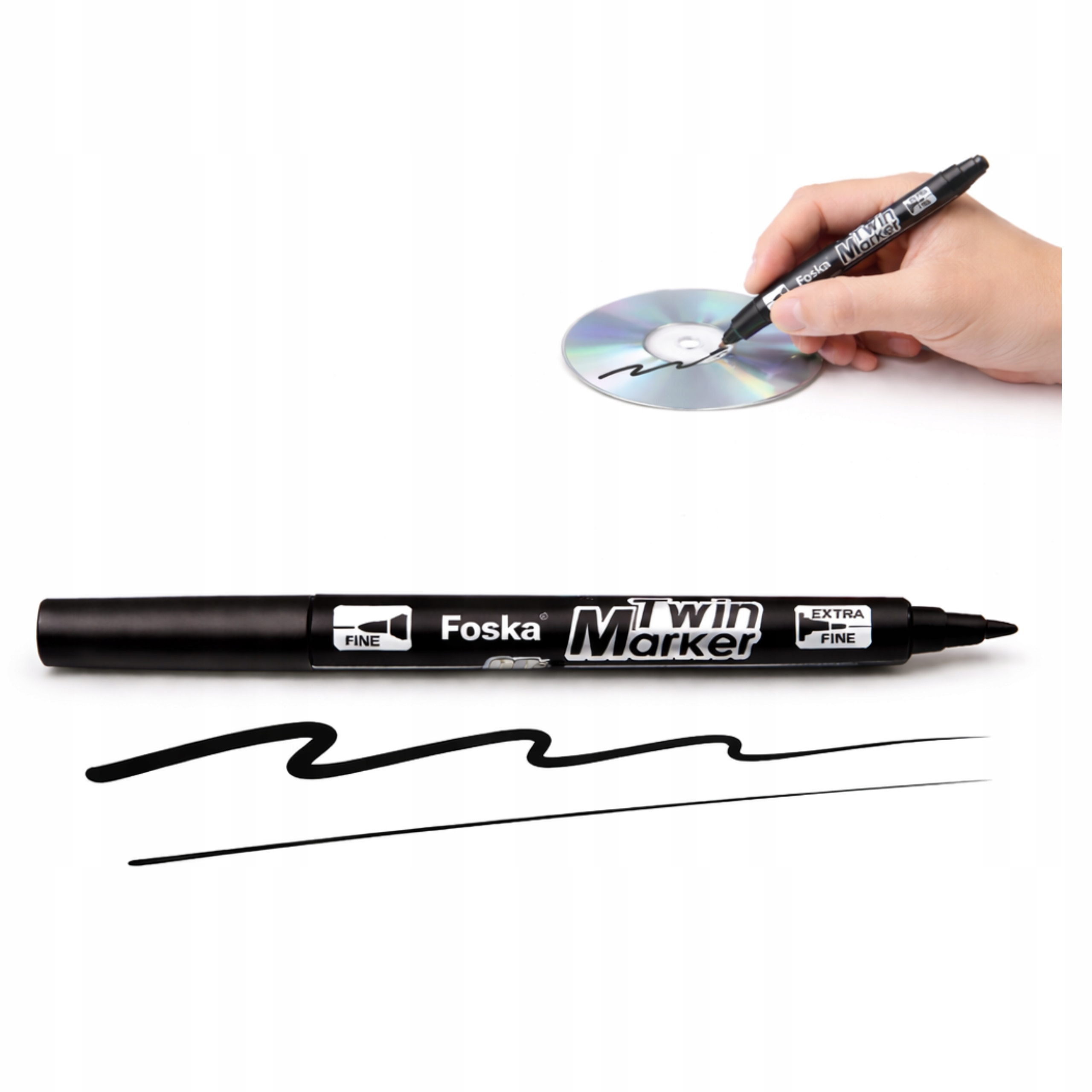 Dwie końcówki w jednym markerze – cienka do precyzyjnego pisania oraz grubsza do wyraźnych oznaczeń
