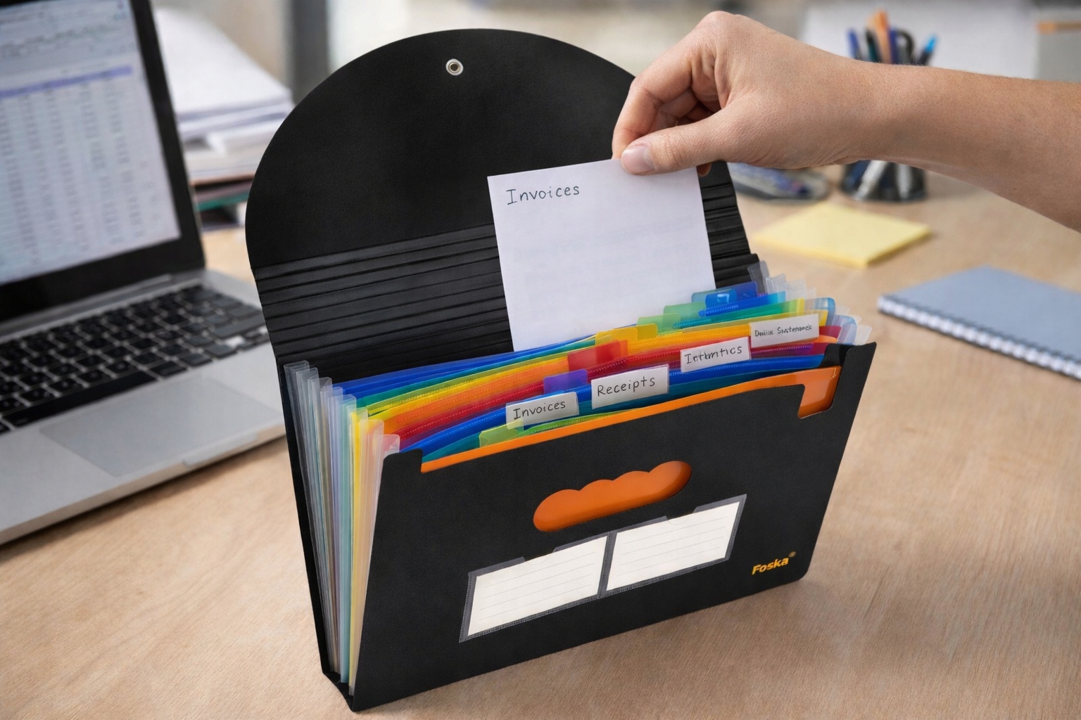 Praktyczna i pojemna teczka harmonijkowa w formacie A4 to idealne rozwiązanie do organizacji dokumentów w domu, biurze, szkole czy na uczelni. Dzięki aż 13 przegródkom z łatwością posegregujesz rachunki, umowy, notatki czy materiały projektowe.